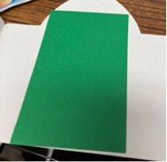 - Now for the inside cut out a piece of colored paper 2¼” x 3½”. The color of the paper should complement your holy card of St. Joseph. Glue in center of shrine. See picture #4.